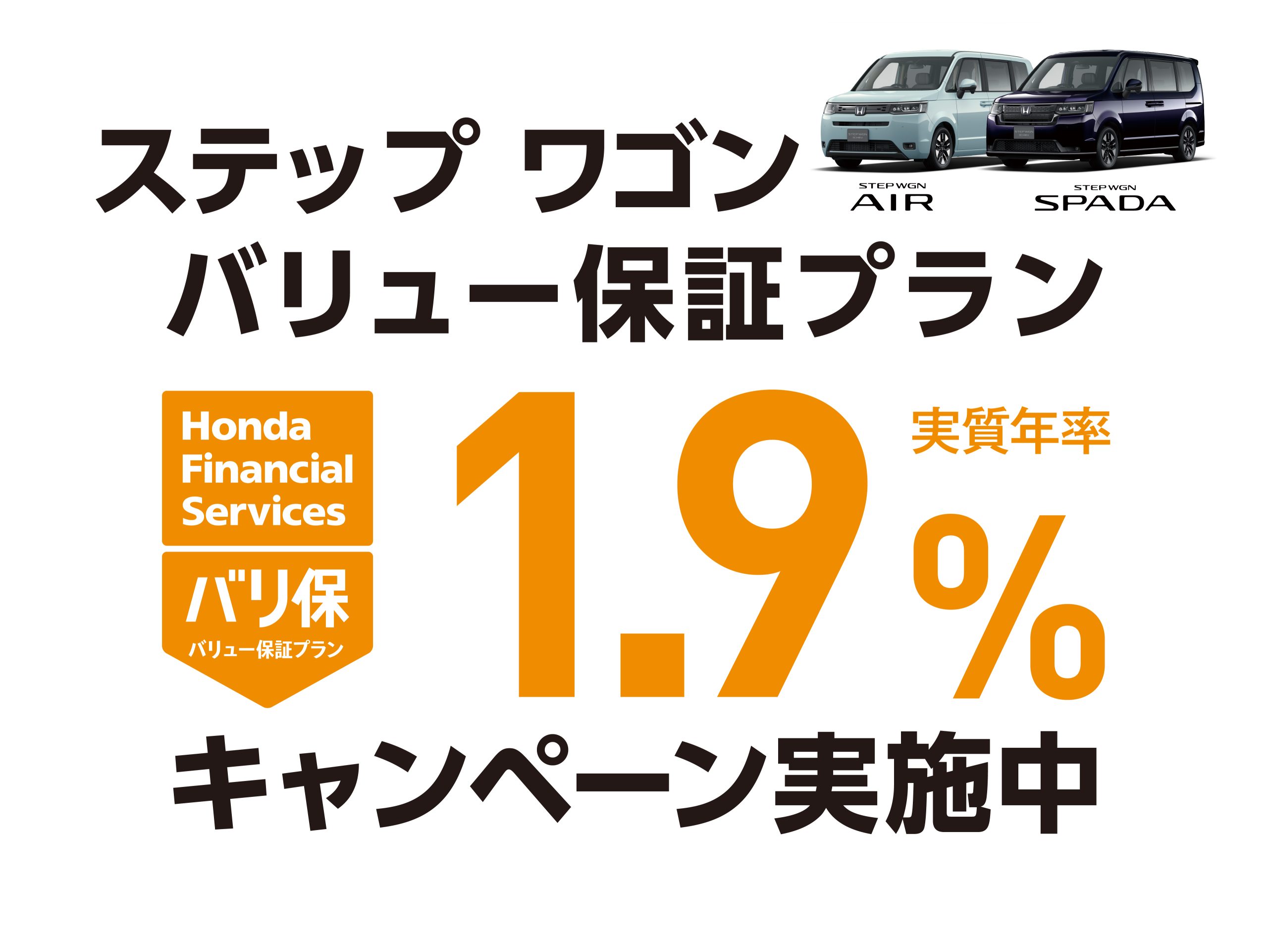 今ならステップワゴンがバリュー保証プラン 1.9%キャンペーン中でお求めやすくなってます。詳しくは店頭にてお問い合わせください。