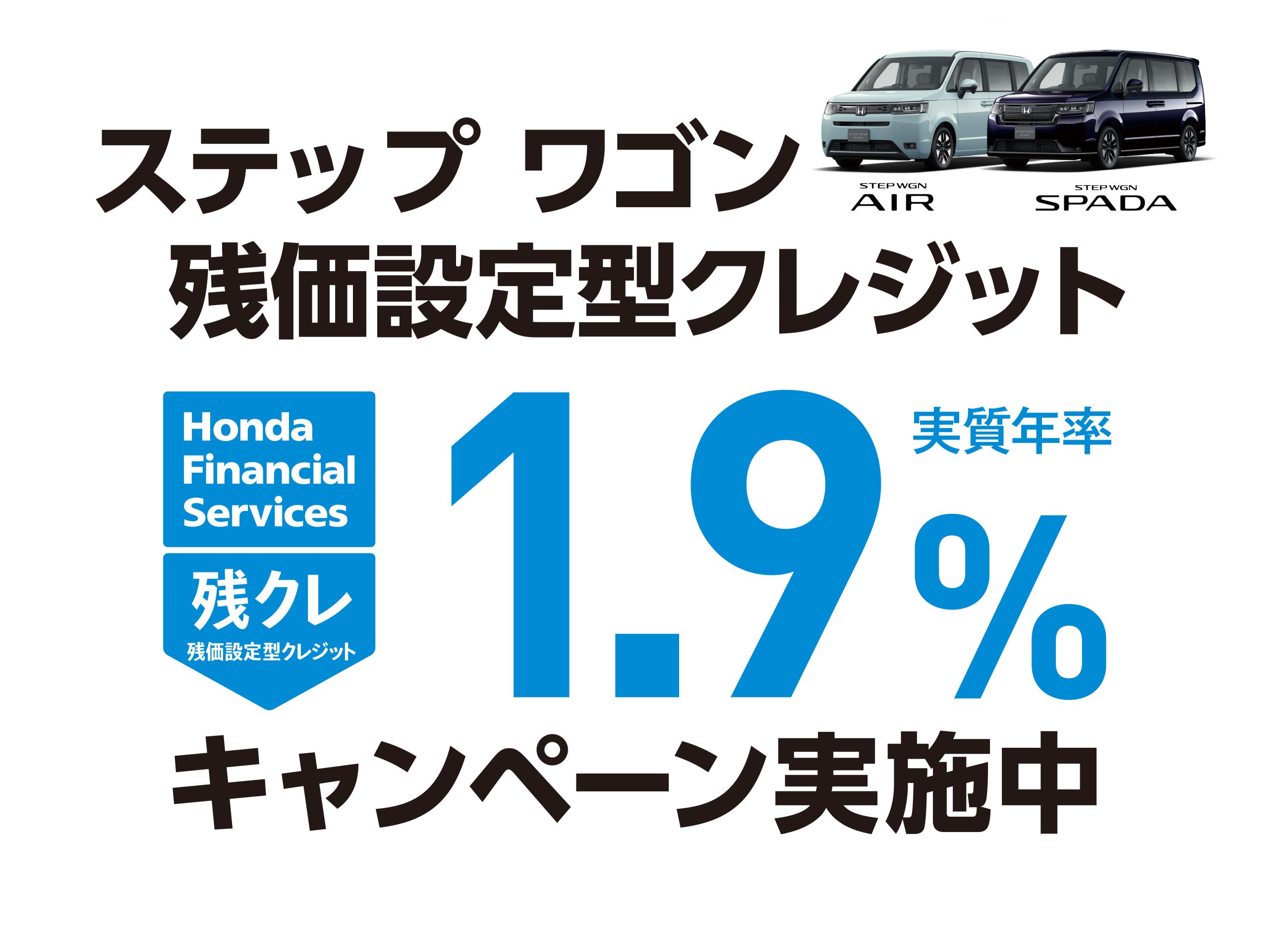今ならステップワゴンが残価設定型クレジット 1.9%キャンペーン中でお求めやすくなってます。詳しくは店頭にてお問い合わせください。