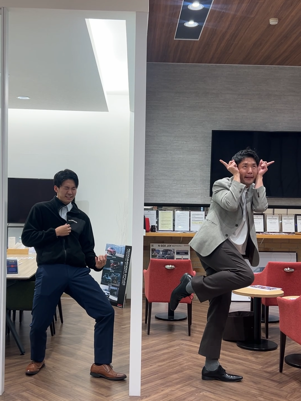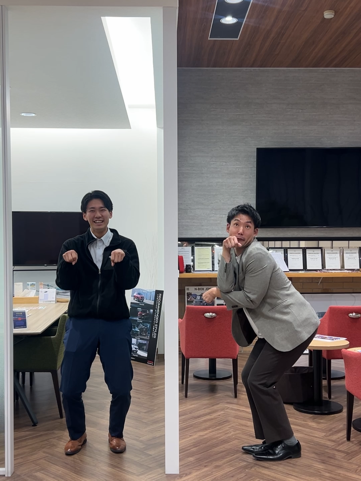 今回ホンダカーズ佐賀のInstagramでは、スタッフ同士で流行の ポーズそろうかチャレンジ に挑戦!