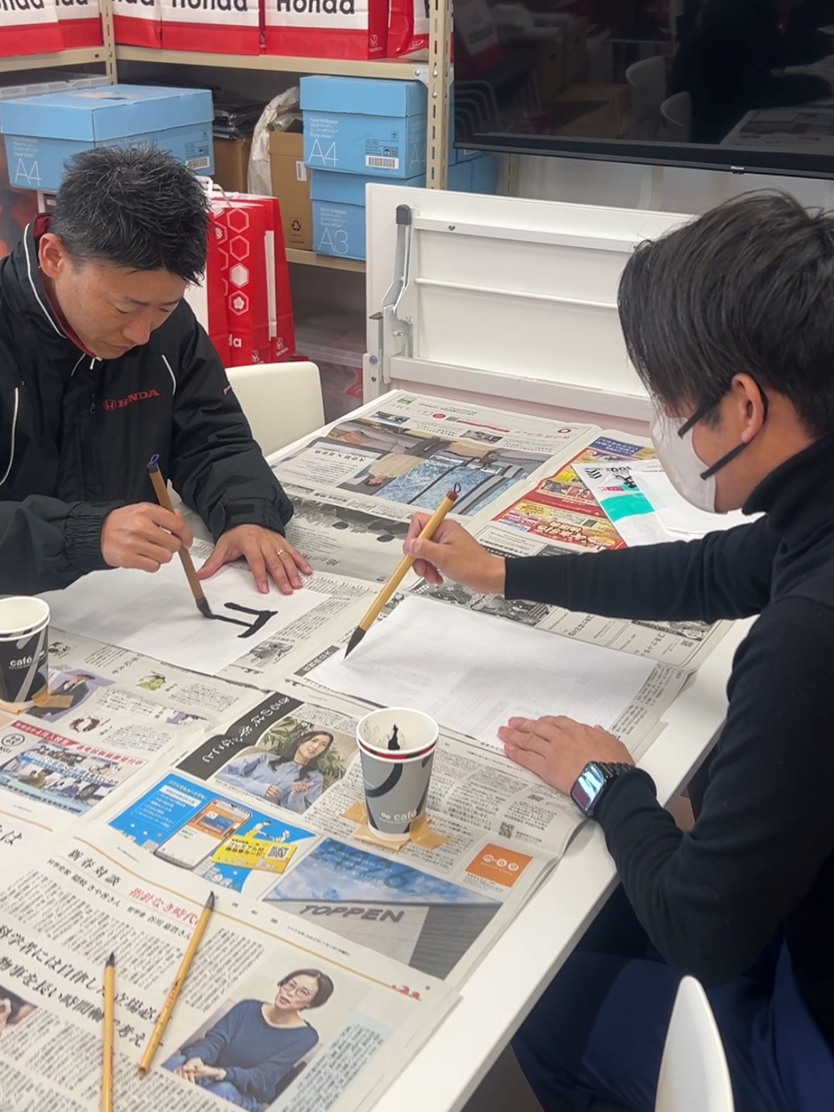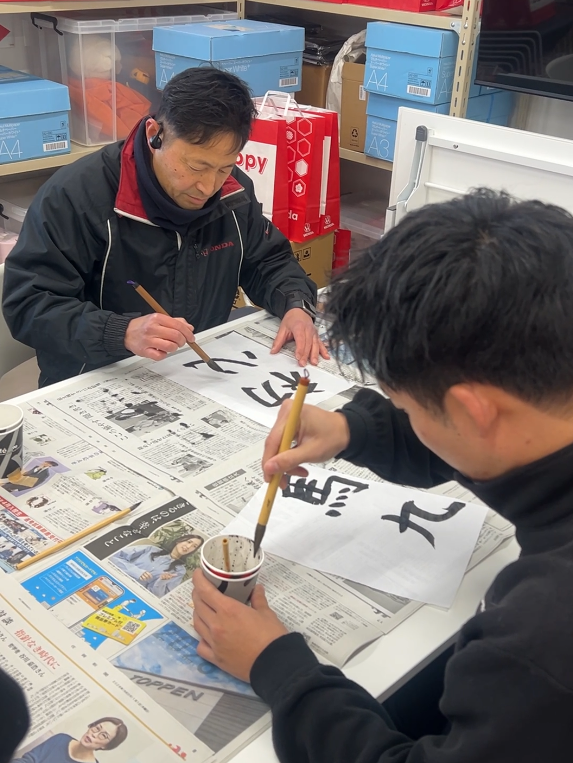 スタッフそれぞれが目標を書き初めに込めました!