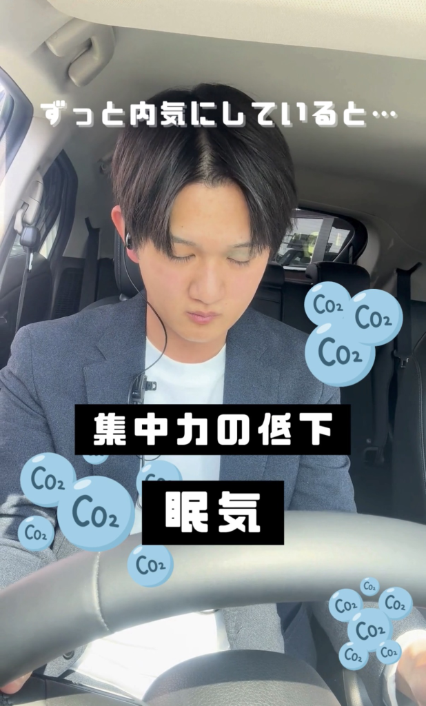 実はそれ、車内のCO₂濃度が上がって、眠気・集中力低下の原因になることも😱😱