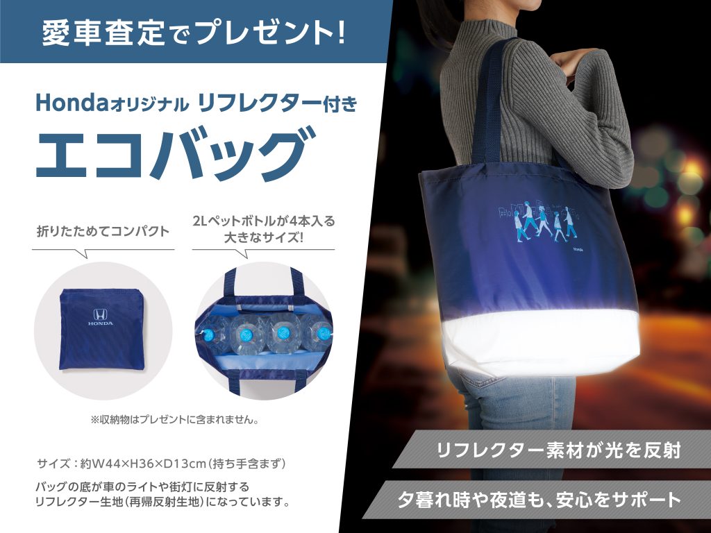 愛車査定でHondaオリジナルリフレクター付きエコバッグ プレゼント!