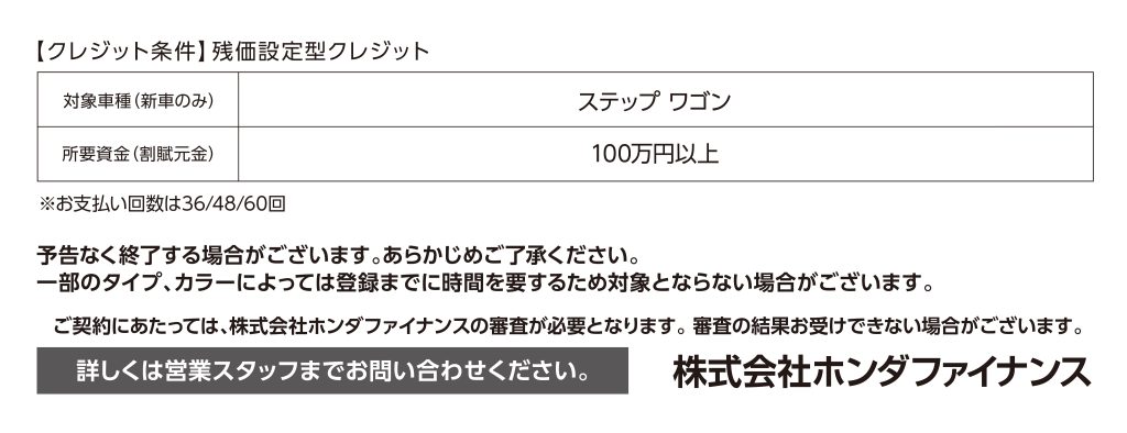 ステップ ワゴン 残価設定型クレジット 2.9%キャンペーン実施中